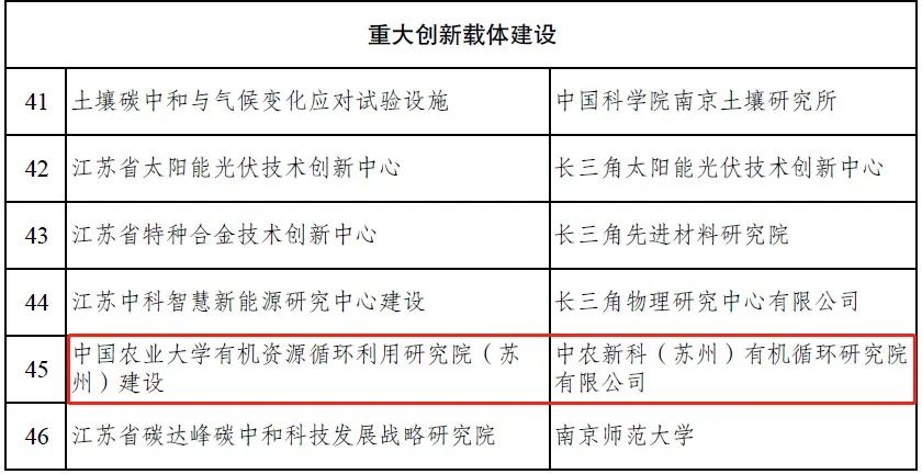 由中農新科(蘇州)有機循環研究院有限公司承擔的中國農業大學有機資源循環利用研究院(蘇州)建設項目成功入選“重大創新載體建設”(省新型研發機構建設)項目。
