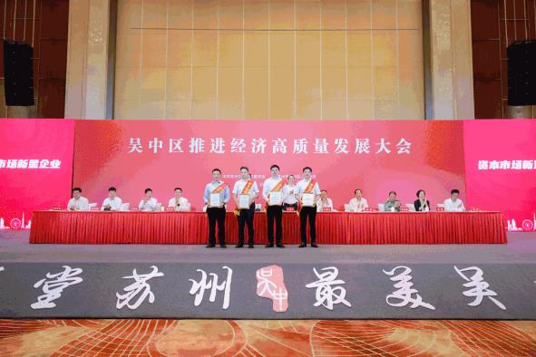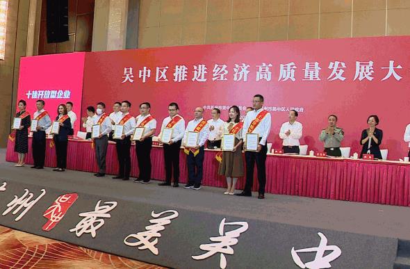 7月12日,蘇州市吳中區召開推進經濟高質量發展大會,大會通報了蘇州市吳中區經濟貢獻突出企業名單,韓博科技榮膺蘇州市吳中區2021年度優秀民營骨干企業和2021年度綠色發展引領企業稱號。